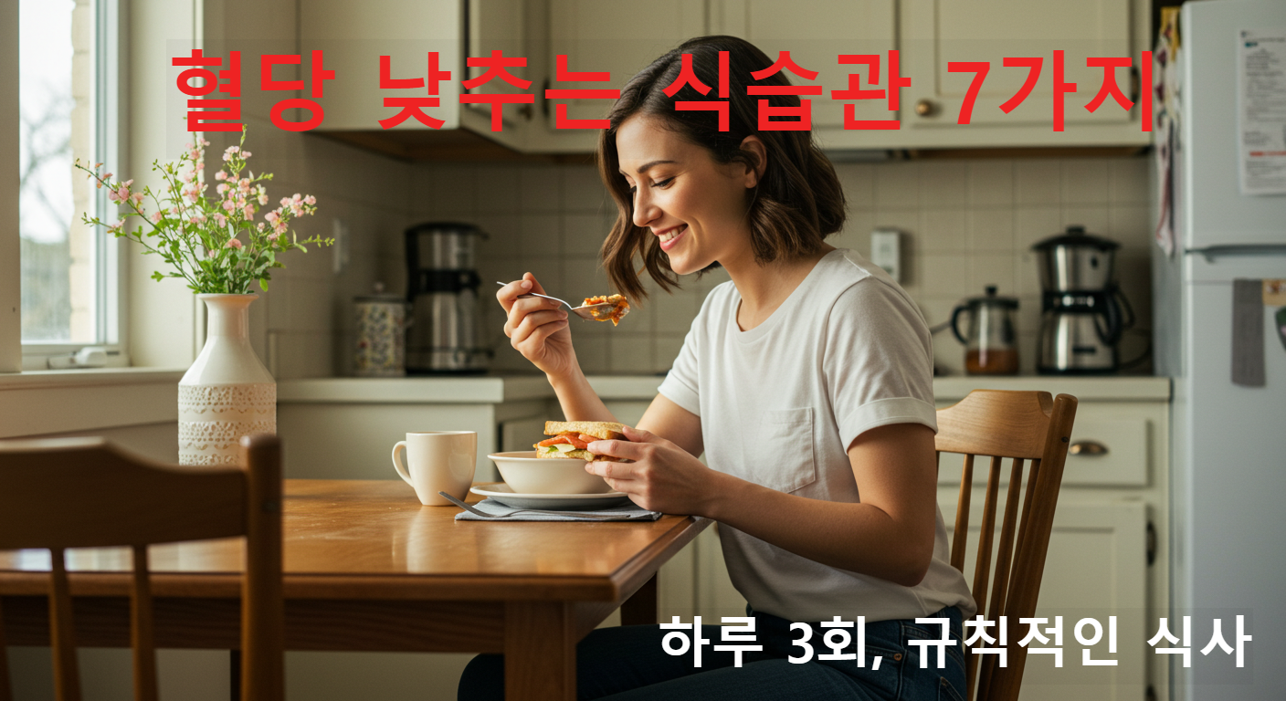 혈당을 낮추는 식습관 7가지혈당 관리는 생활 속 실천에서 시작됩니다. 복잡한 약물 치료 이전에, 우리가 매일 하는 '식사'를 조금만 바꿔도 혈당 조절에 큰 도움이 됩니다. 오늘은 과학적으로 검증된 혈당을 낮추는 식습관 7가지를 소개해드립니다.1. 식사 순서를 바꾸세요채소 → 단백질 → 탄수화물 순서로 먹는 것이 혈당 상승을 완만하게 합니다. 특히 식이섬유가 풍부한 채소를 먼저 섭취하면 포만감을 높이고 혈당 스파이크를 줄일 수 있습니다.2. GI 지수가 낮은 음식을 선택하세요현미, 보리, 고구마, 귀리처럼 혈당지수(GI)가 낮은 탄수화물을 선택하면 혈당이 천천히 오릅니다. 흰쌀밥, 흰빵, 감자처럼 GI가 높은 음식은 피하는 것이 좋습니다. GI 지수 낮은 음식과 높은 음식 총정리 + 똑똑한 탄수화물 섭취..