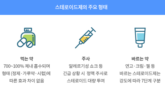 - 대표적인 주사제: 덱사메타손(Dexamethasone, Decadron)