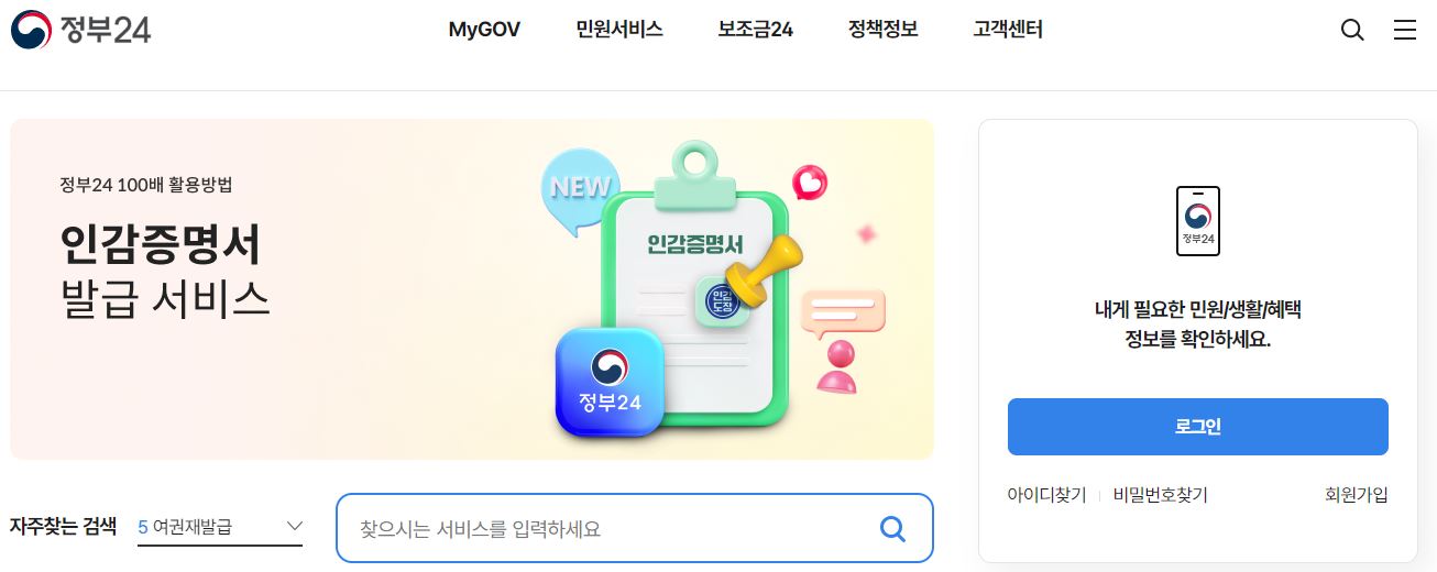 - 정부24 홈페이지 접속