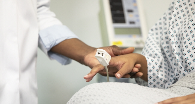 산소포화도는 귓불이나 발가락으로도 측정할 수 있지만, 손가락이 가장 안정적이고 편리합니다. 특히 수술방은 기온이 낮아 말초혈관 수축으로 인해 센서 오류가 날 수 있기 때문에 손가락 여러 곳을 교체하며 측정할 수 있도록 손 전체를 깨끗하게 유지하는 것이 안전합니다.