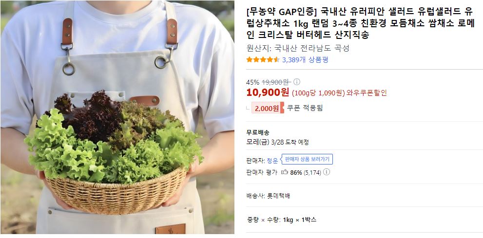 * 부드럽고, 색감도 너무나 예쁜 유러피안 쌈채소 맛있어서 자주 시켜 먹고 있어요.