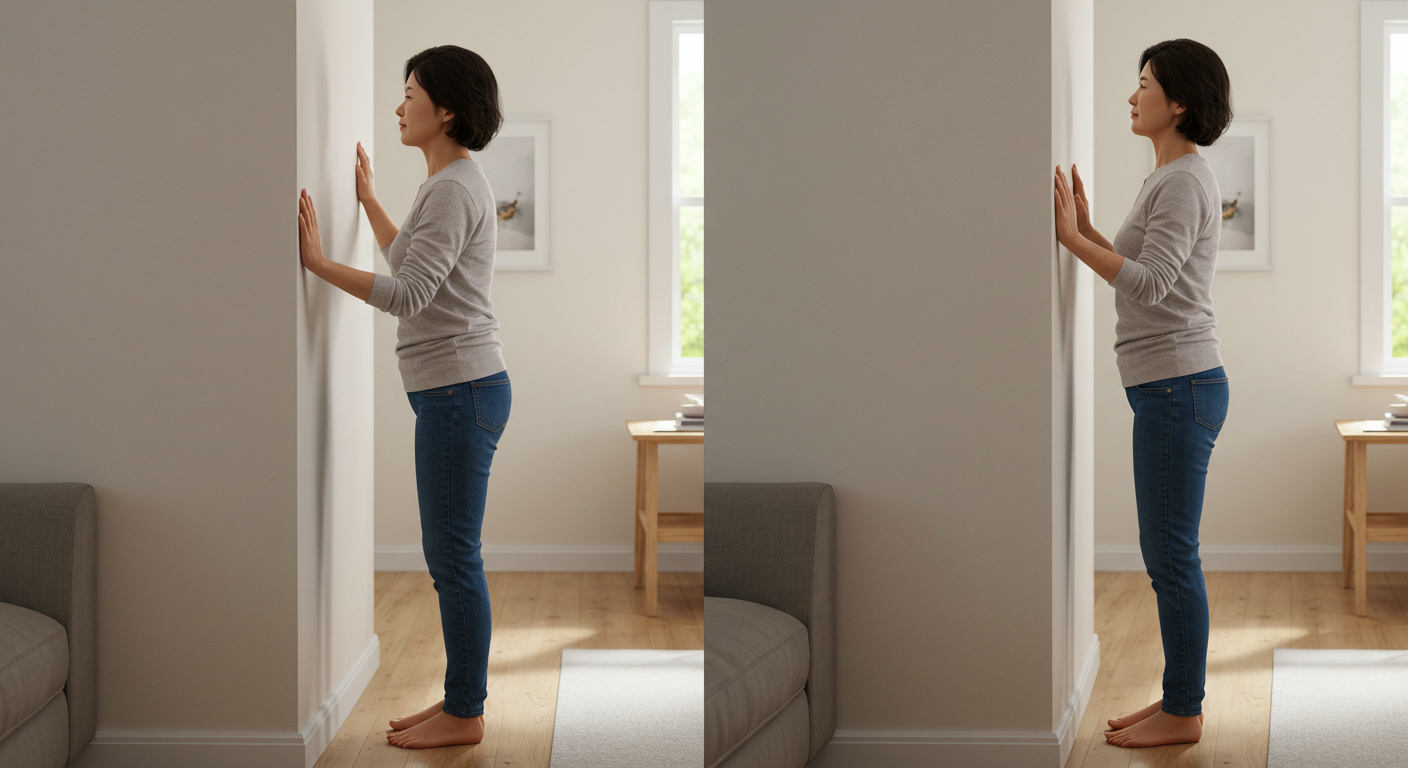 - 종아리 들어올리기 + 발끝 스트레칭 (2분) – 다리 붓기 완화